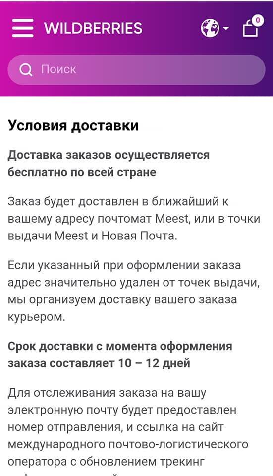 На сайті вказано, що товари в Україну доставляються Новою поштою і Meest.