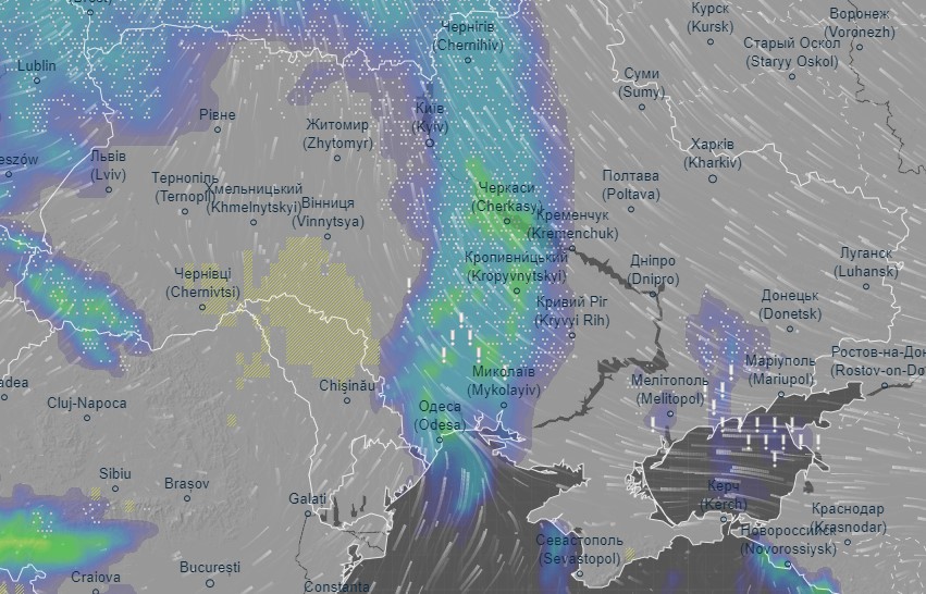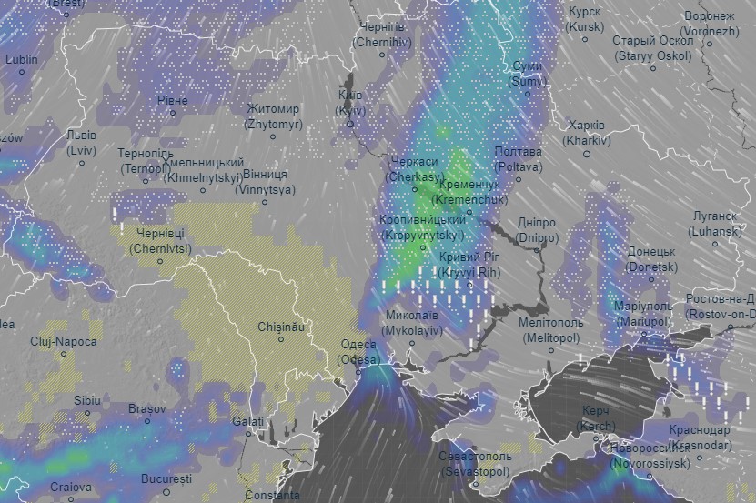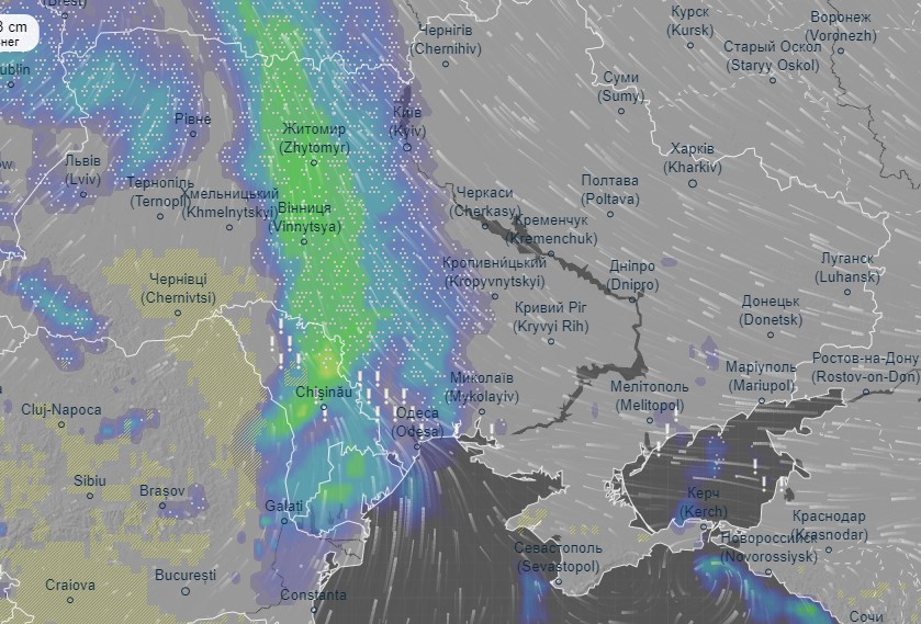 Опади охоплять значну територію України. Зранку сніг та замерзаючий дощ прогнозується у західних, центральних та південних областях.