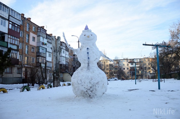 В одному з дворів міста Миколаїв діти зліпили сніговика висотою в кілька метрів.