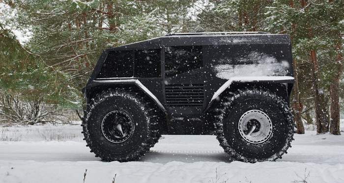 Всюдихід обладнаний пневмопідвіскою з гасителями коливань, максимально низьким центром ваги, кліренсом в 58 сантиметрів, блокуванням диференціалів і тристоронньою системою управління обома парами коліс.