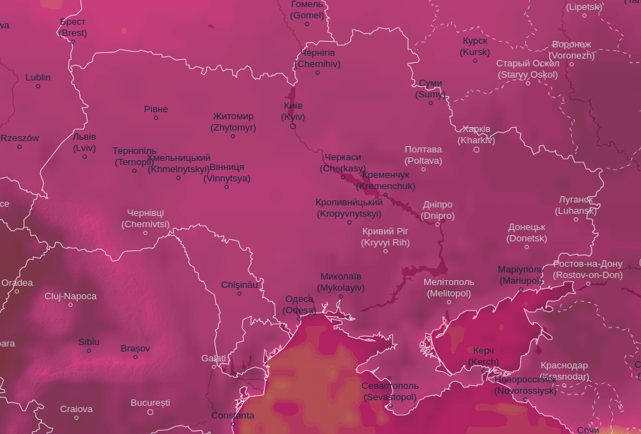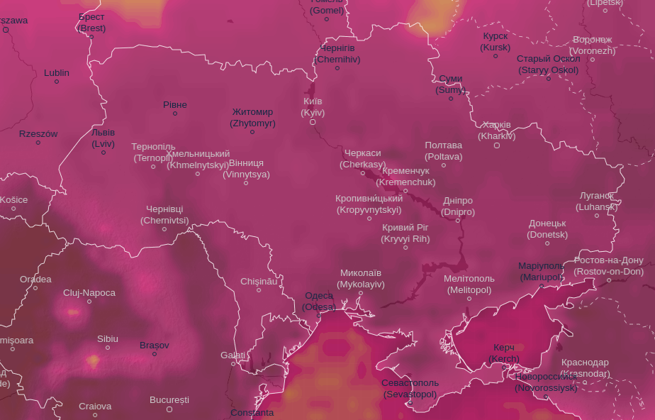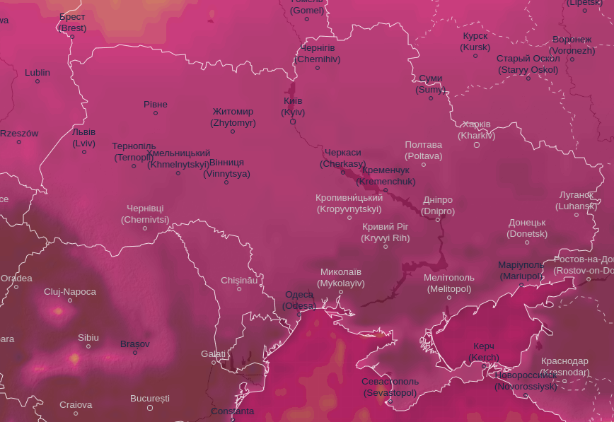 Про це свідчать дані Ventusky.