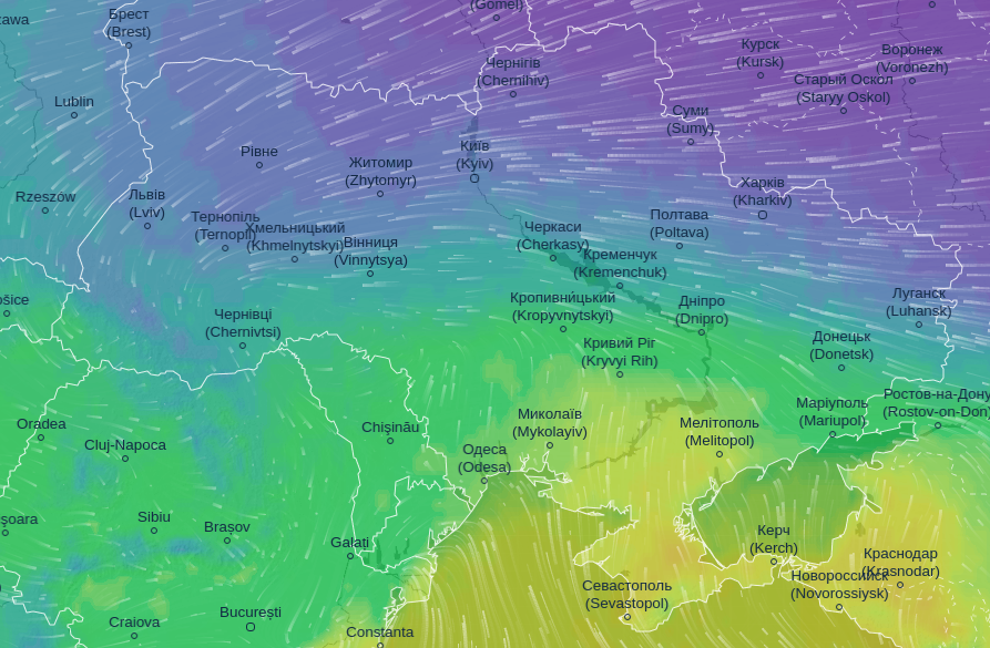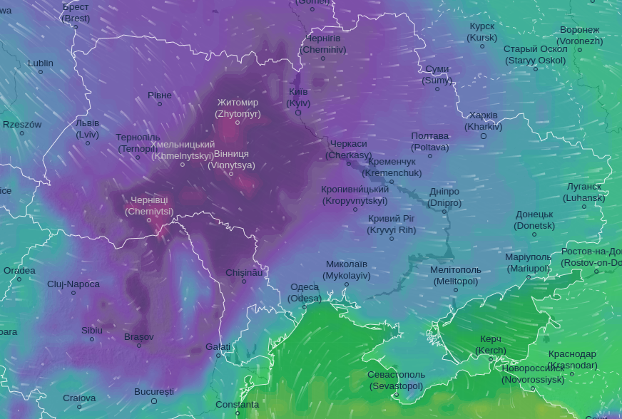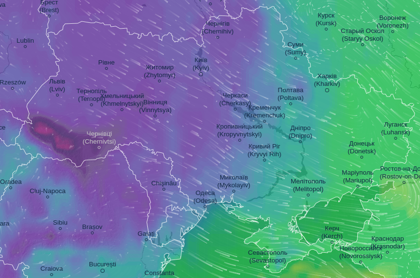 Про це повідомляє Ventusky.