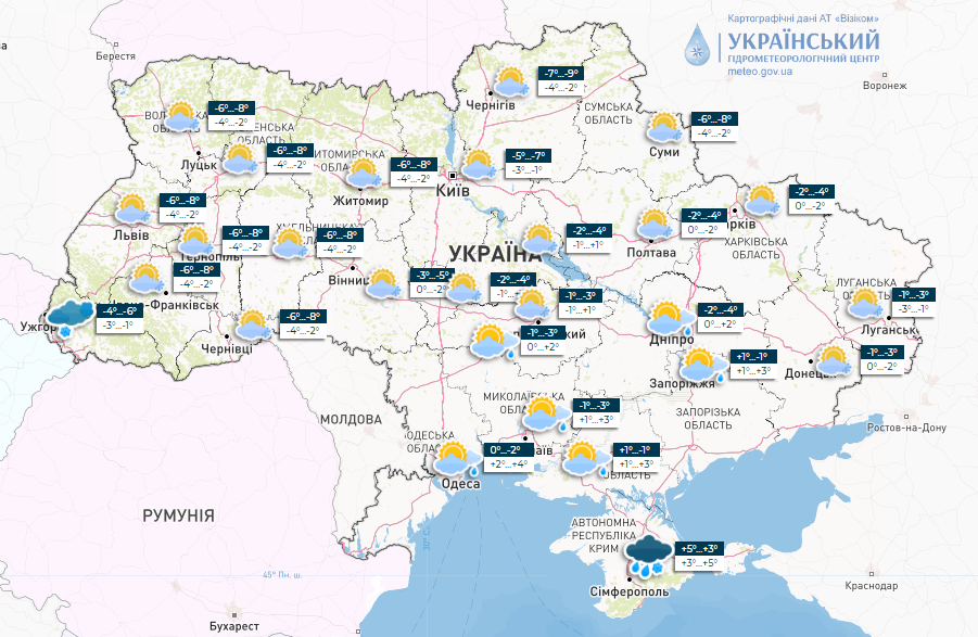 В понеділок, 4 грудня, на більшій території України встановиться суха і морозна погода. Невеликий дощ та сніг ймовірні лише в Криму, Приазов'ї та Закарпатті.