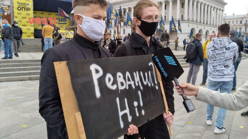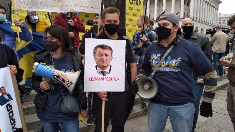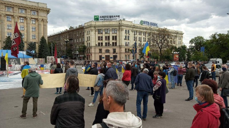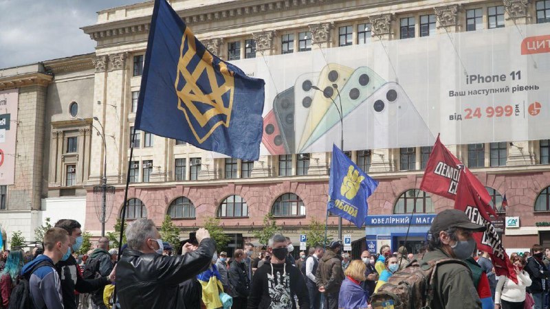 Також люди виступають з вимогою звільнити затриманих "майданівців", не переслідувати патріотів, продовжити політику декомунізації, усунути олігархів від управління країною і звільнити главу Офісу президента Андрія Єрмака.