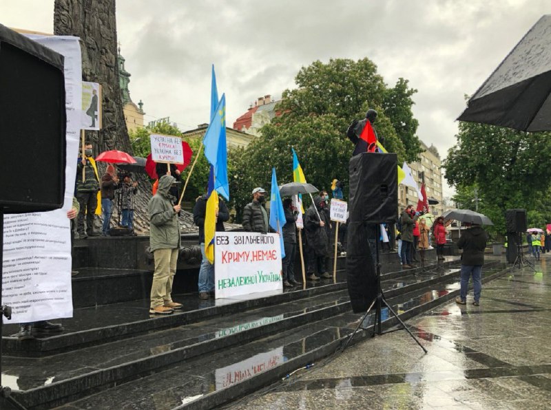 Так, акція у Львові зібрала в центрі міста під дощем кілька десятків протестувальників.