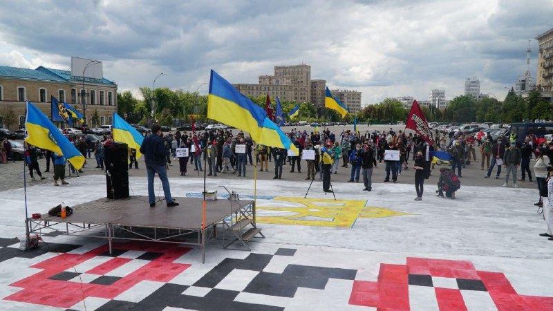 У Києві акція розпочалася на Майдані Незалежності. Вона приурочена до річниці президентства Володимира Зеленського. Учасники мітингу заявляють, що незадоволені діяльністю глави держави і вимагають припинити "політику капітуляції перед Росією".