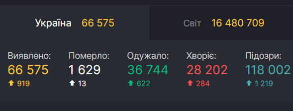 За минулу добу, 27 липня, в Україні зафіксували коронавірус ще у 919 осіб.