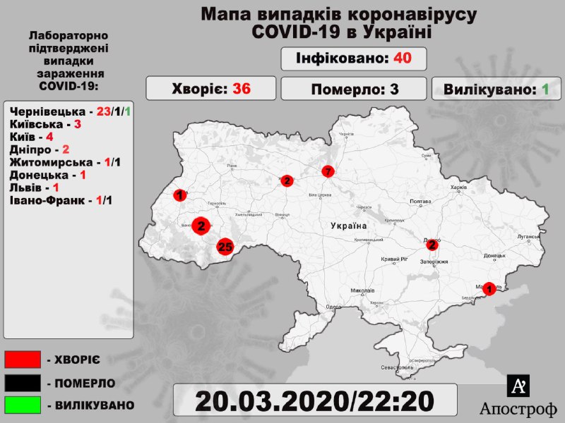 Відзначимо, від коронавірусу в Україні вже померло 3 людини, 1 особа - видужала.