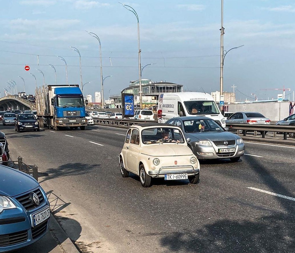 На вулиці української столиці був помічений старий Fiat 500, який був найдешевшим народним італійським автомобілем.