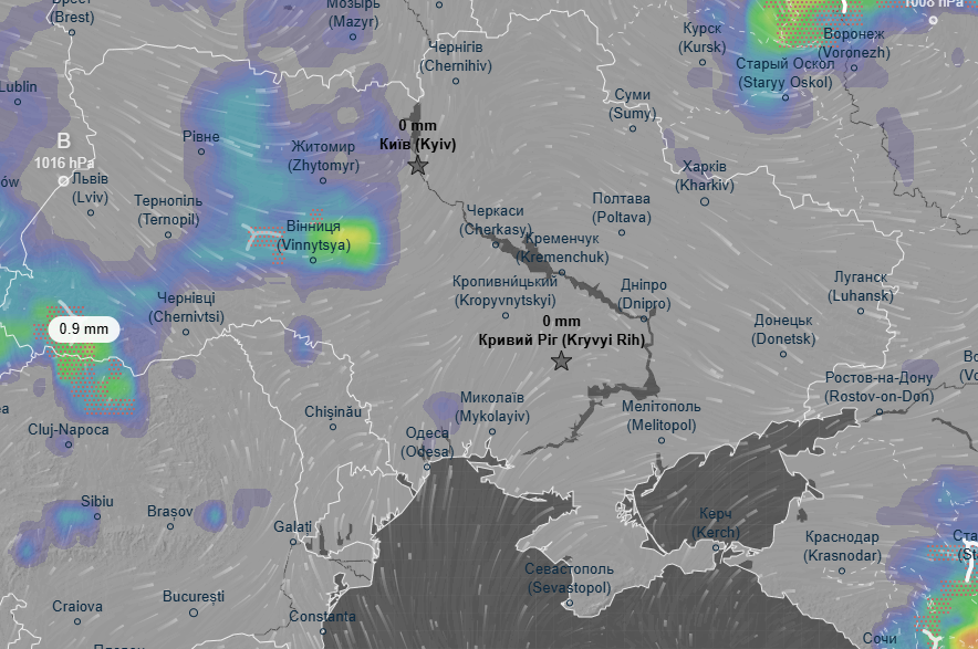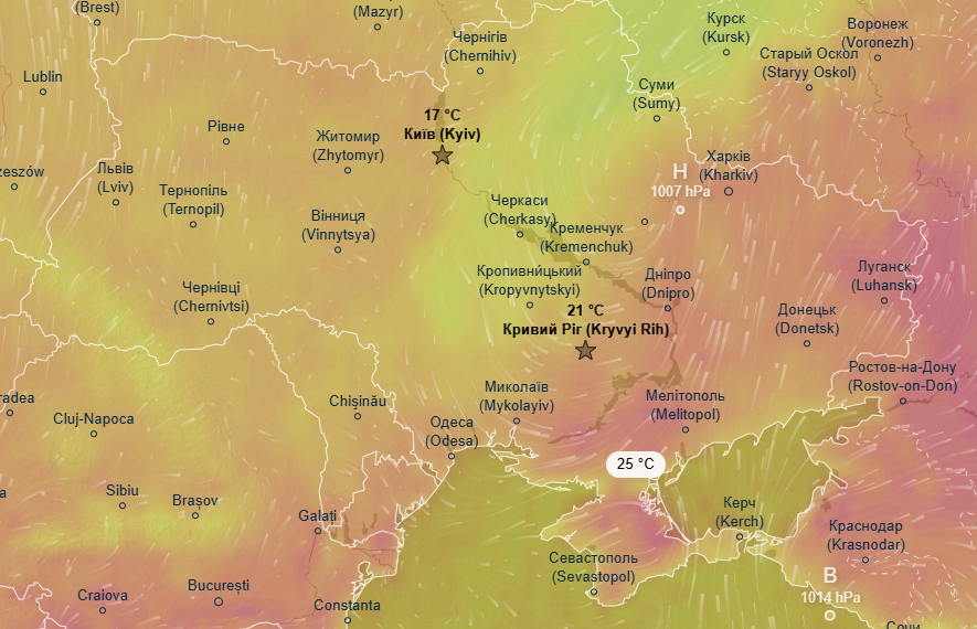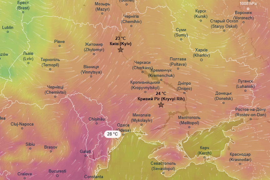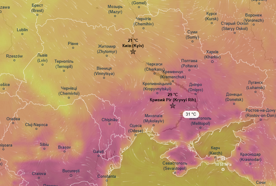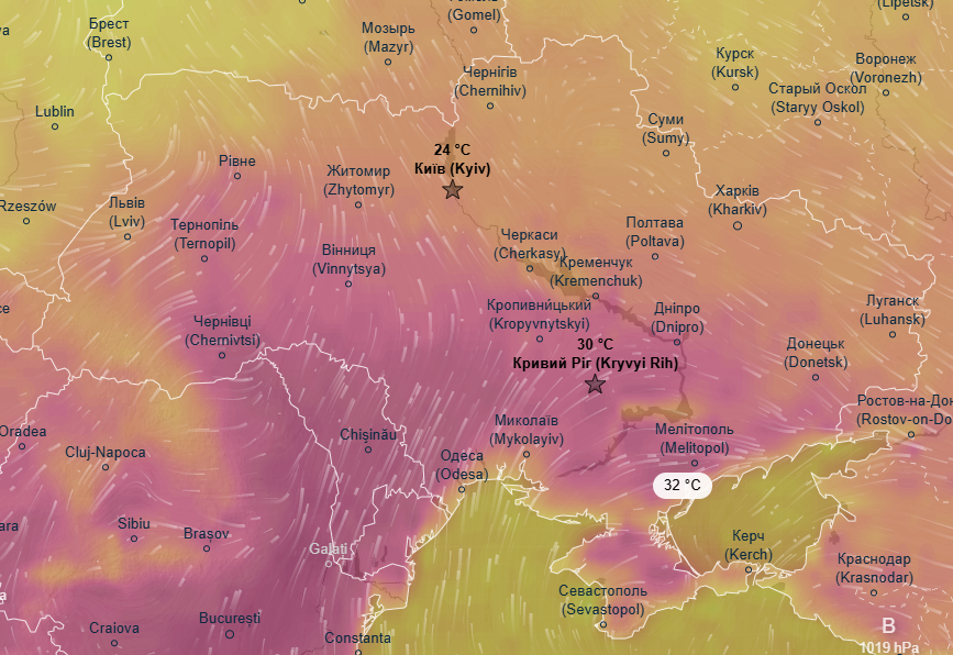 Про це йдеться в прогнозі метеоресурсу Ventusky.