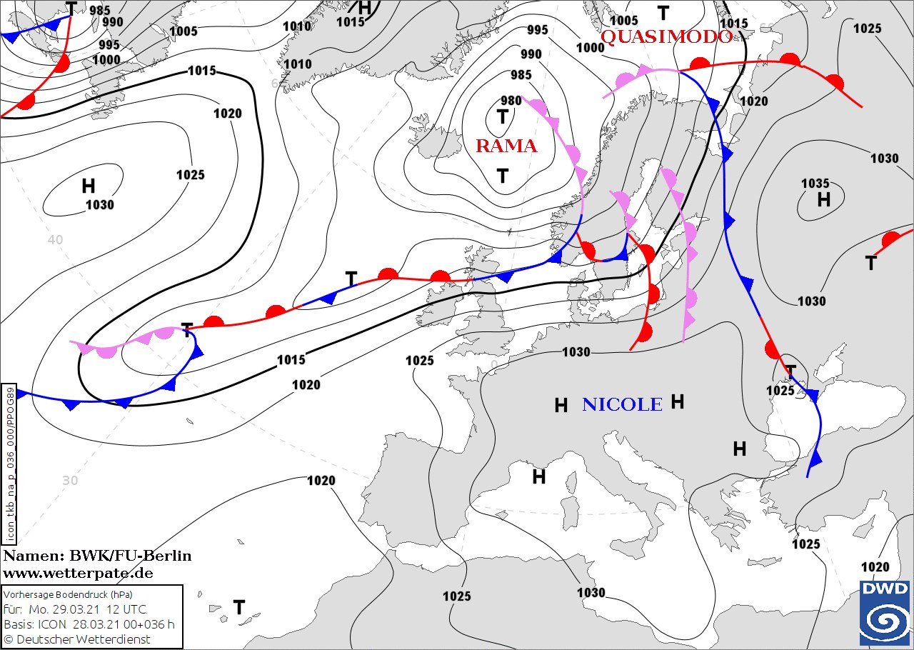 За її прогнозом, у вівторок, 30 березня, погоду України визначатиме антициклон Nikole, який разом зі східним антициклоном витіснить вологий одеський циклон далі в води Чорного моря.