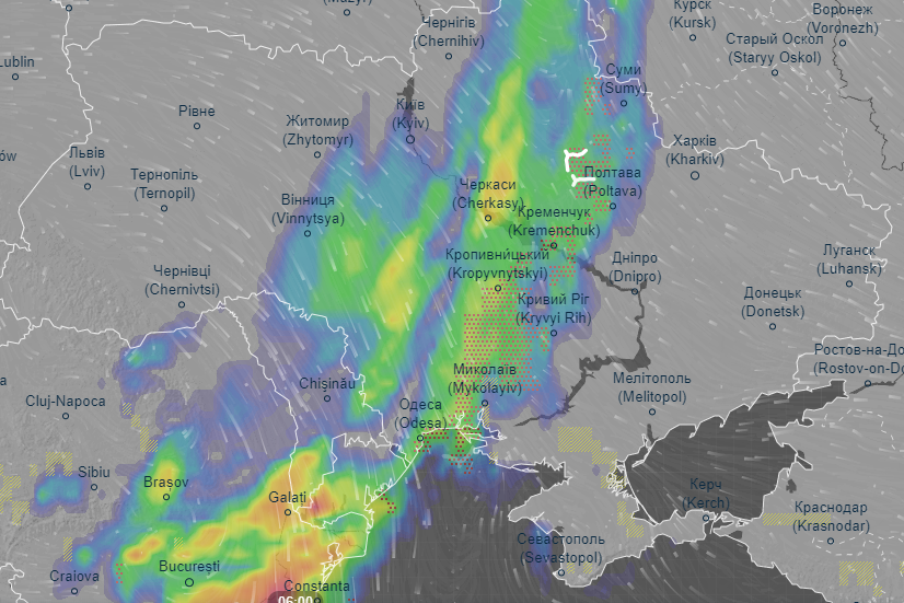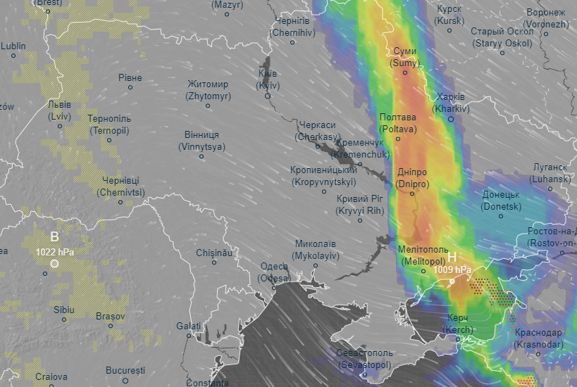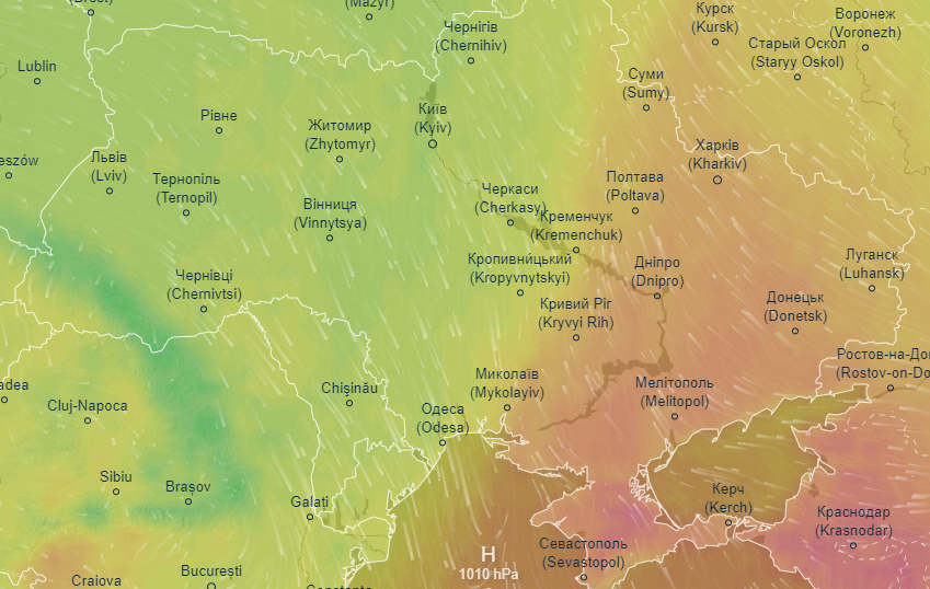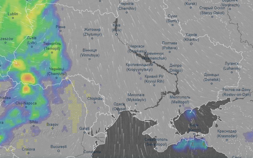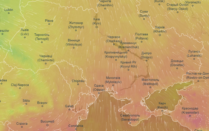 Про це свідчать дані на сайті моніторингу погоди Ventusky.