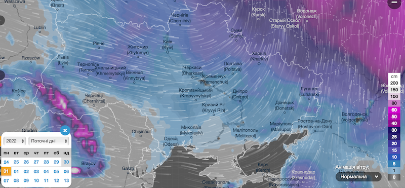 Наступного тижня на більшій частині території шар снігу буде 5-8 см, на півночі – 10-20 см. У Чернігівській області до 22 см. У Карпатах – до 151 см.