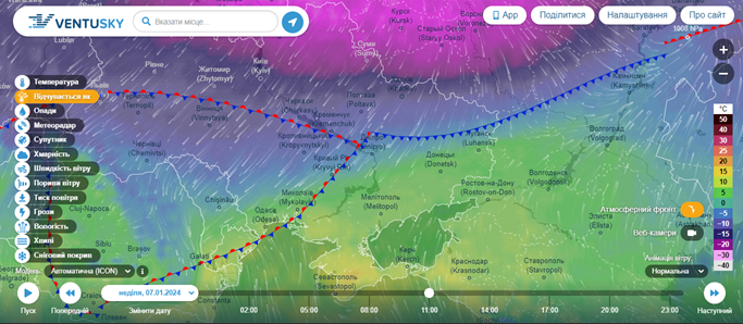 Синоптик наголошує на можливому ускладненні погодних умов 7−8 січня. В західних та північних областях можливі снігопади та хуртовини. Південь і схід України будуть з опадами переважно у вигляді дощу. Центр - з дощем та мокрим снігом, налипанням мокрого снігу, ожеледдю.