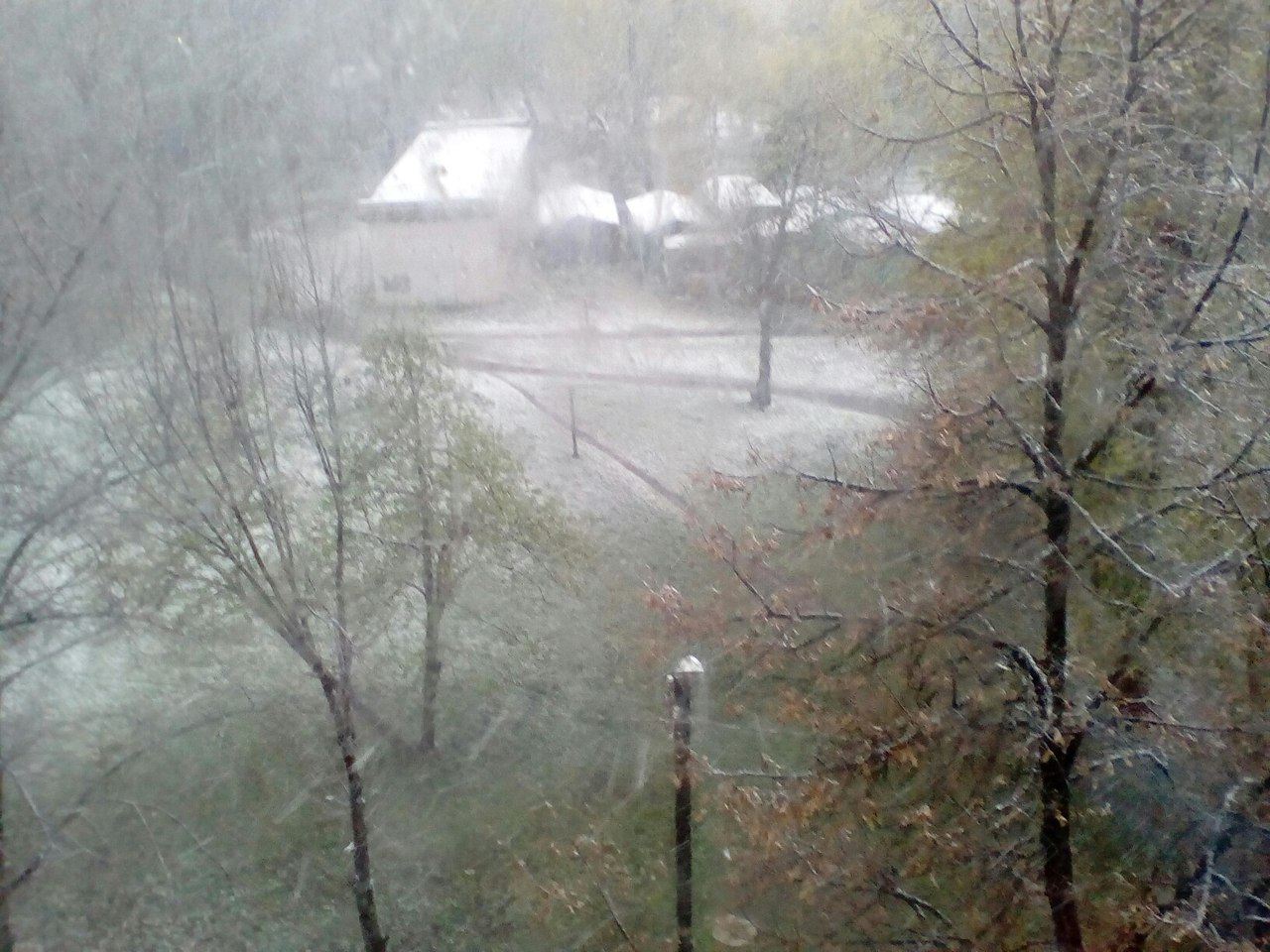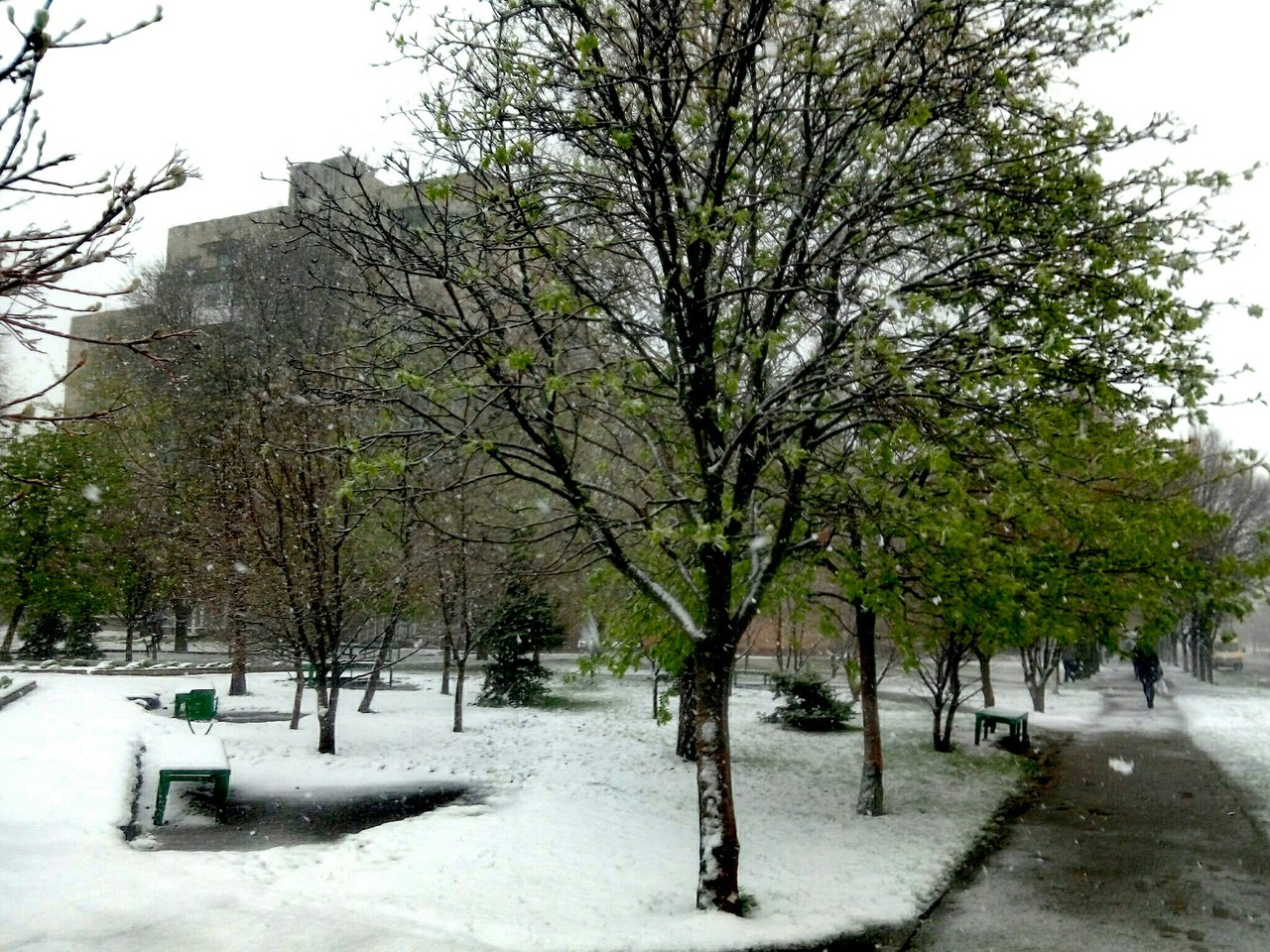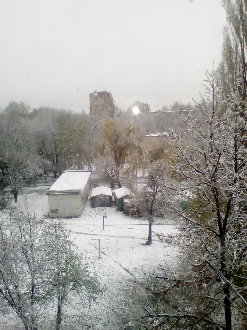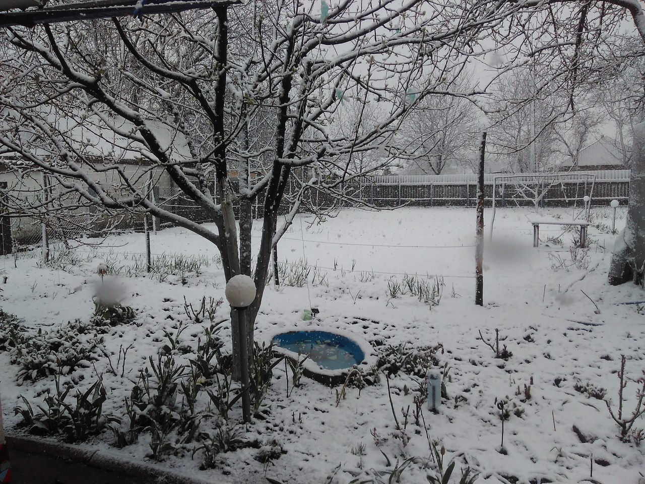 Фото снігу, який випав посеред весни, опубліковані в спільнотах в соцмережі "ВКонтакте" "Подслушано Лозовая" і "Типичный Днепр".