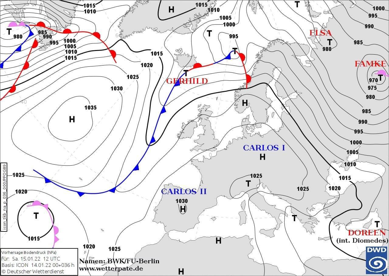 Сильний вітер, який спостерігається в Україні 14 січня, приніс потепління. Вітряна погода, яка викликана протистоянням антициклону Carlos та циклону Famke, збережеться в країні й у суботу, 15 січня.