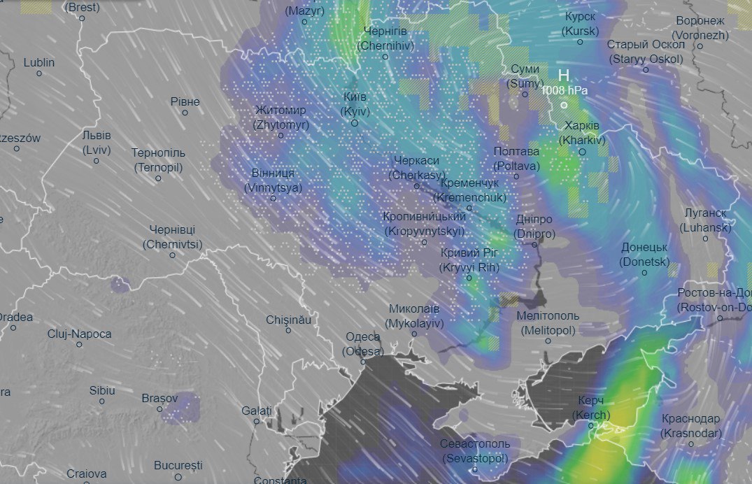 Саме про це свідчать дані погодного ресурсу ventusky.