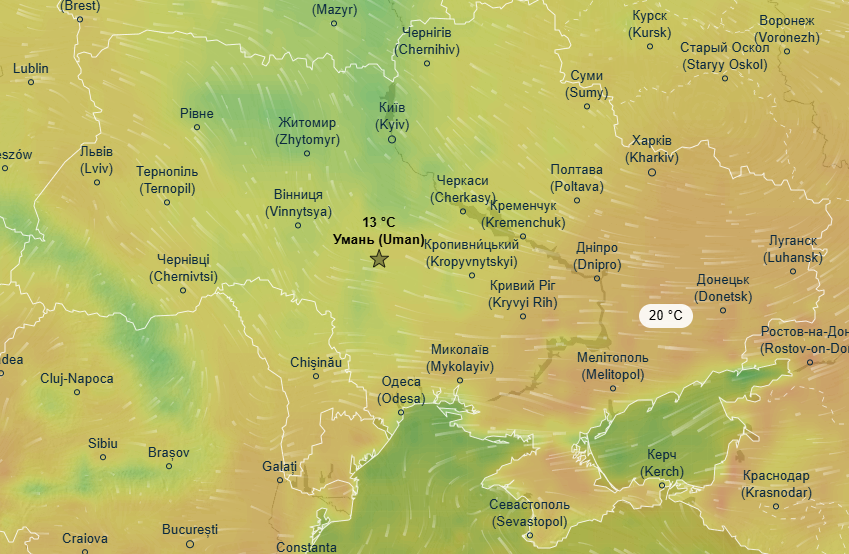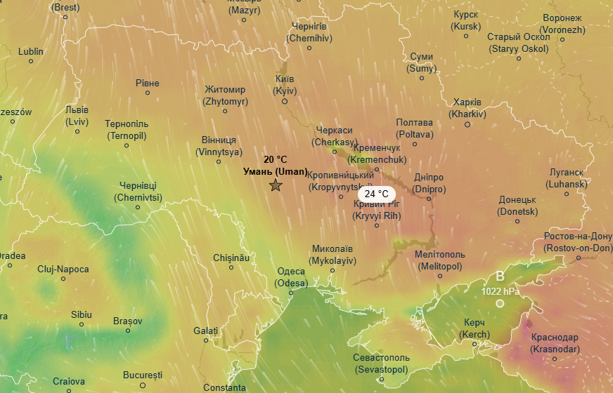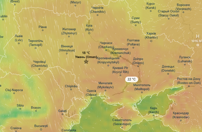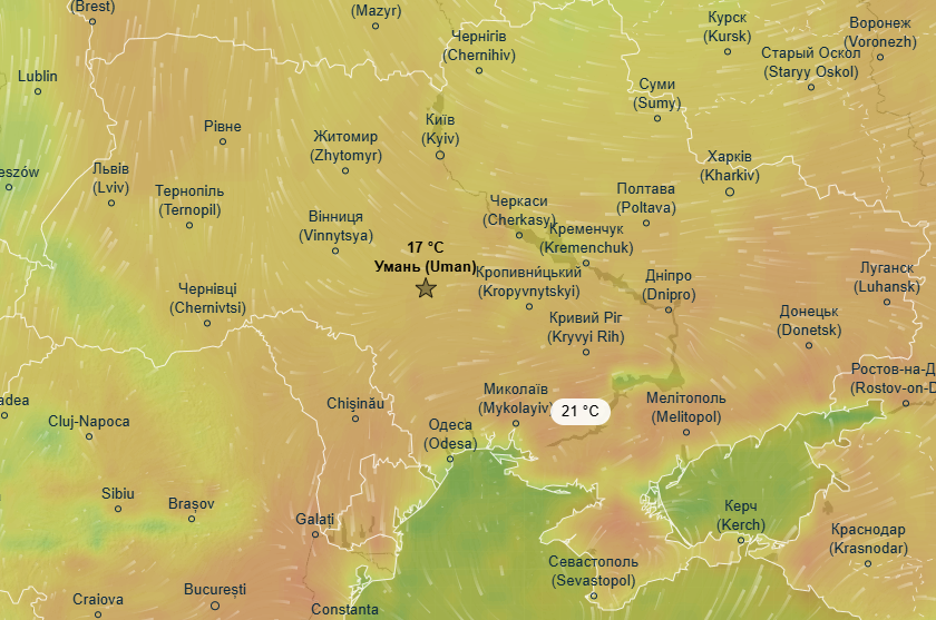 Про це свідчать дані метеорадара Ventusky, який складає довгостроковий прогноз погоди.