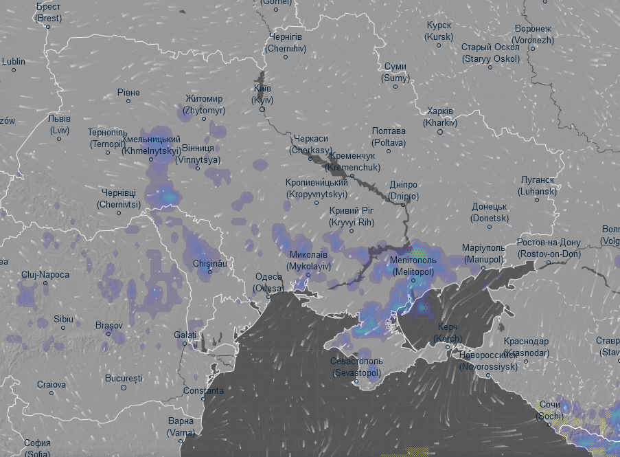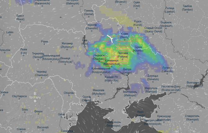 Про це повідомляє погодний радар Ventusky.