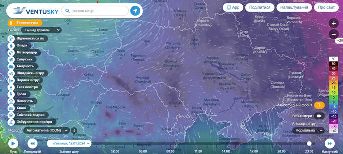 У неділю, 14 січня, із заходу почне надходити теплий атмосферний фронт, тому температура розпочне підвищуватися. В той же час на сході та півночі все ще пануватимуть морози - до 17 градусів з позначкою мінус.