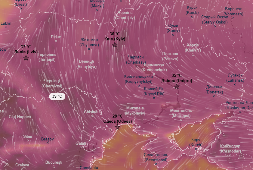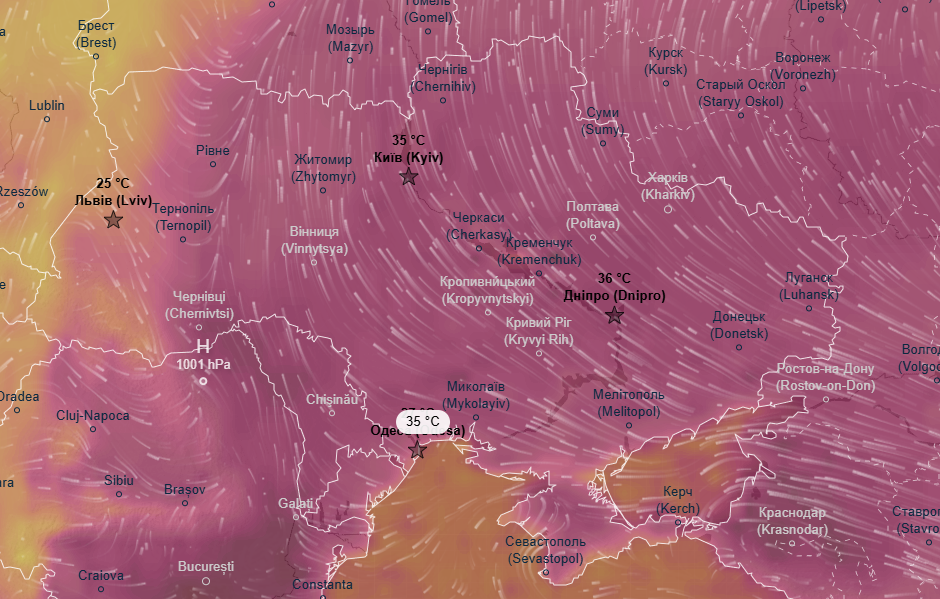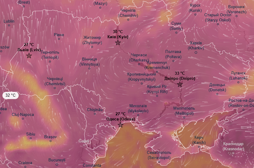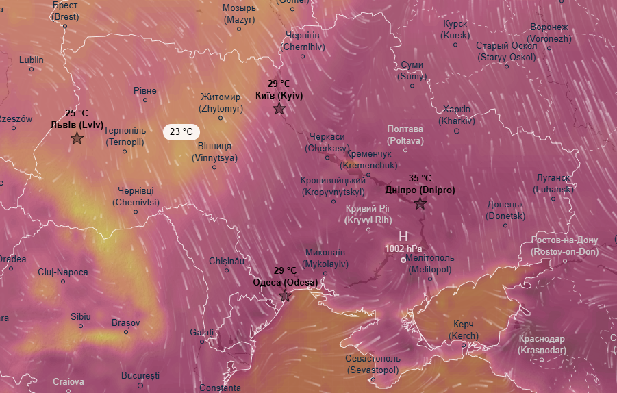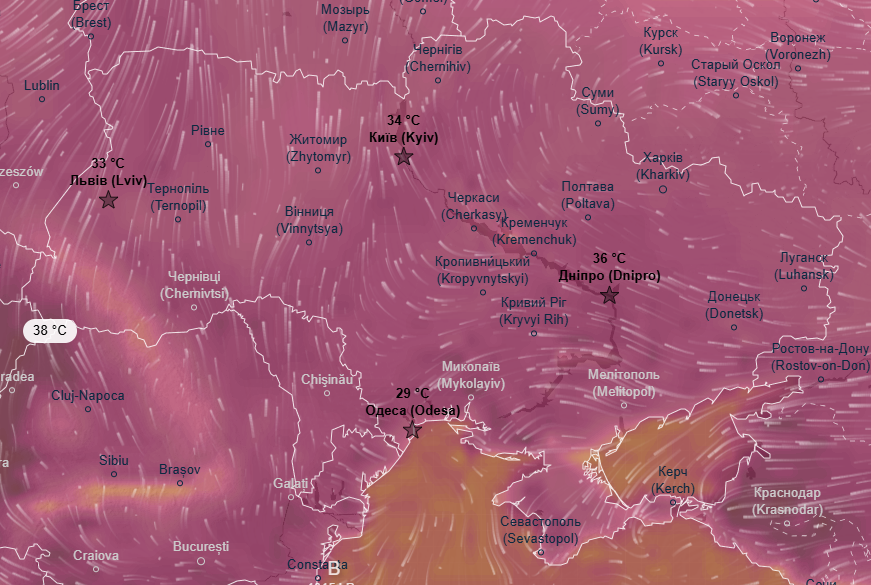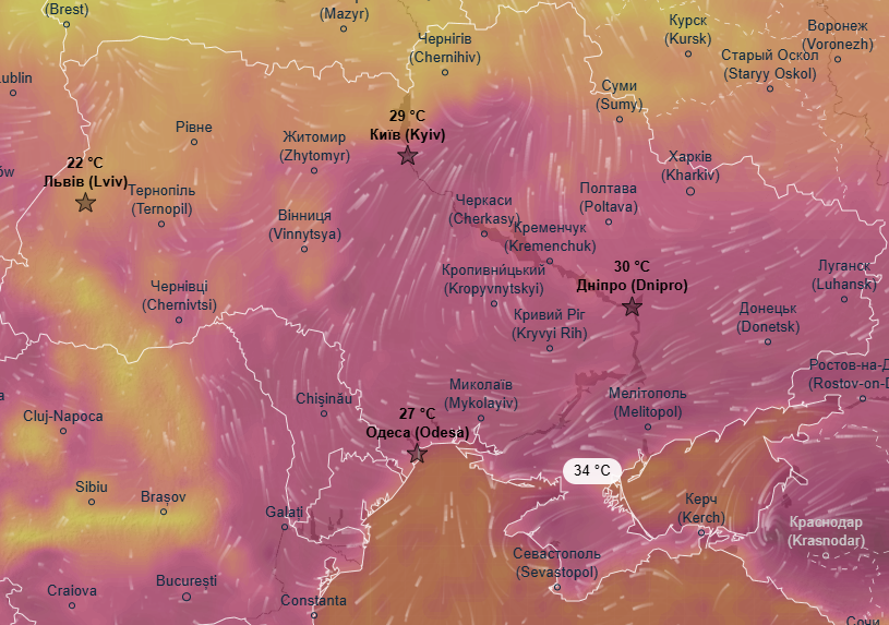 Про це свідчать дані метеоресурса Ventusky.