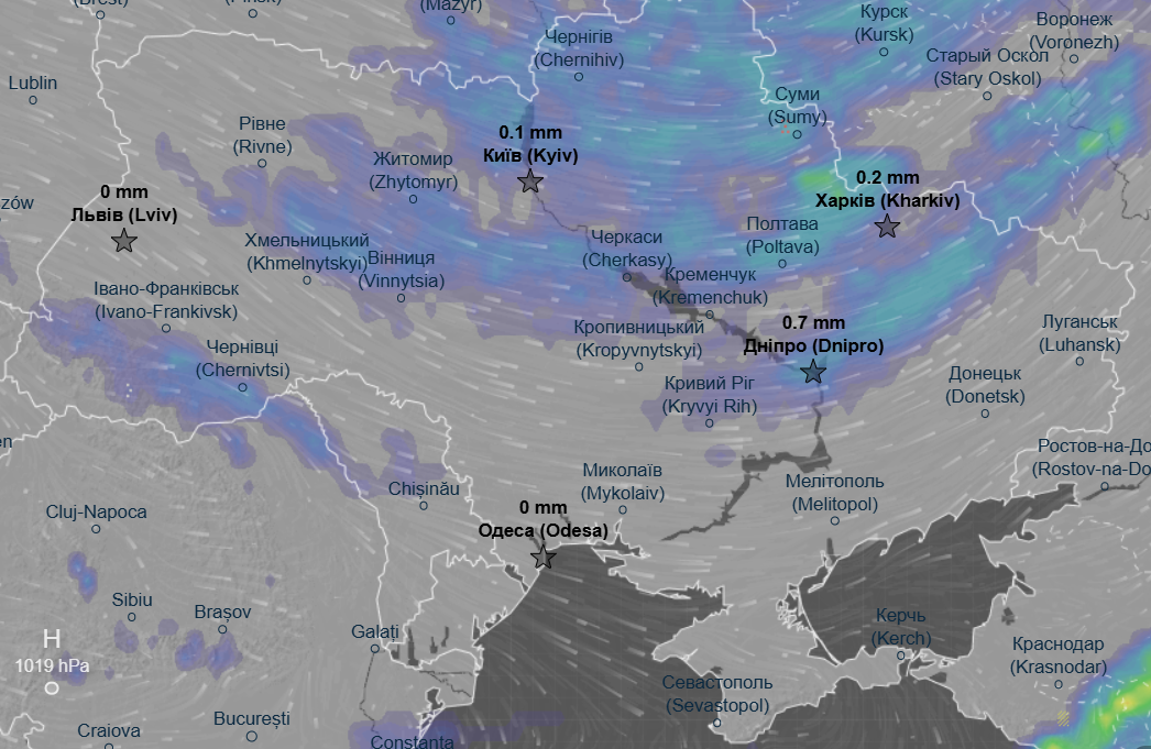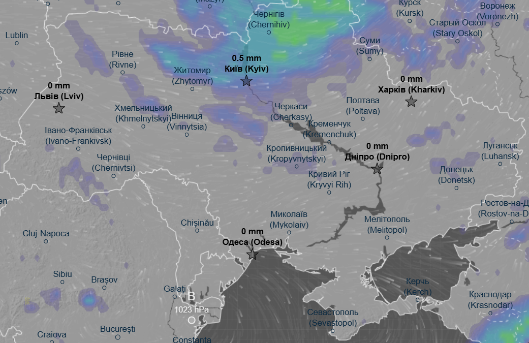 Впродовж доби невеликі дощі накриють Івано-Франківщину, північні та центральні області, а ближче до вечора вологий атмосферний фронт переміститься на Харківщину та Донеччину.