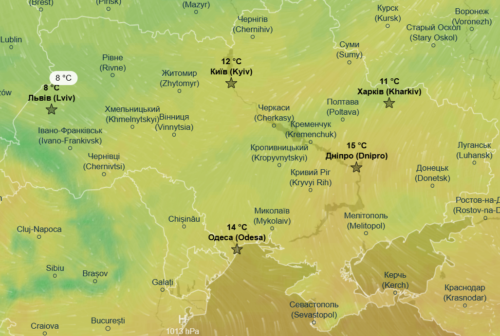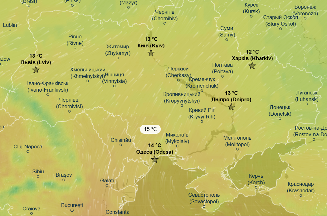 У середу, 15 жовтня, на більшу частину України прийде потепління, однак на Чернігівщині та Сумщині денний максимум складе лише +6 градусів. Тим часом в центральних, західних та південних областях потепліє до +10...+14 градусів.