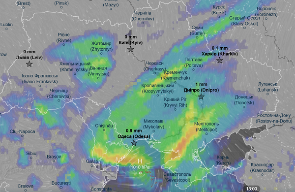 Вранці короткочасні дощі можливі в західних областях, а в другій половині доби південні області накриють сильні дощі зі зливами. Опади також очікуються в центрі країни, в Кропивницькому та області - сильні зливи.