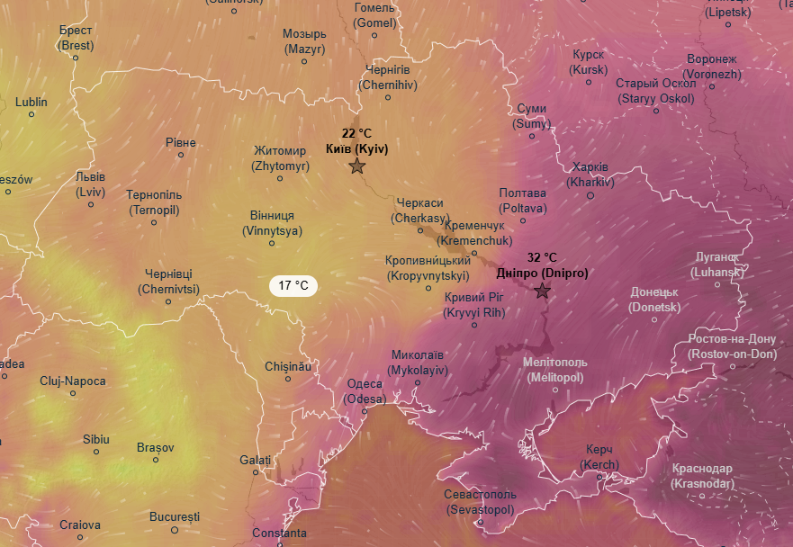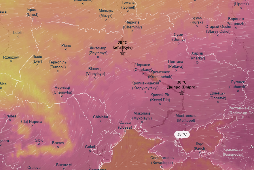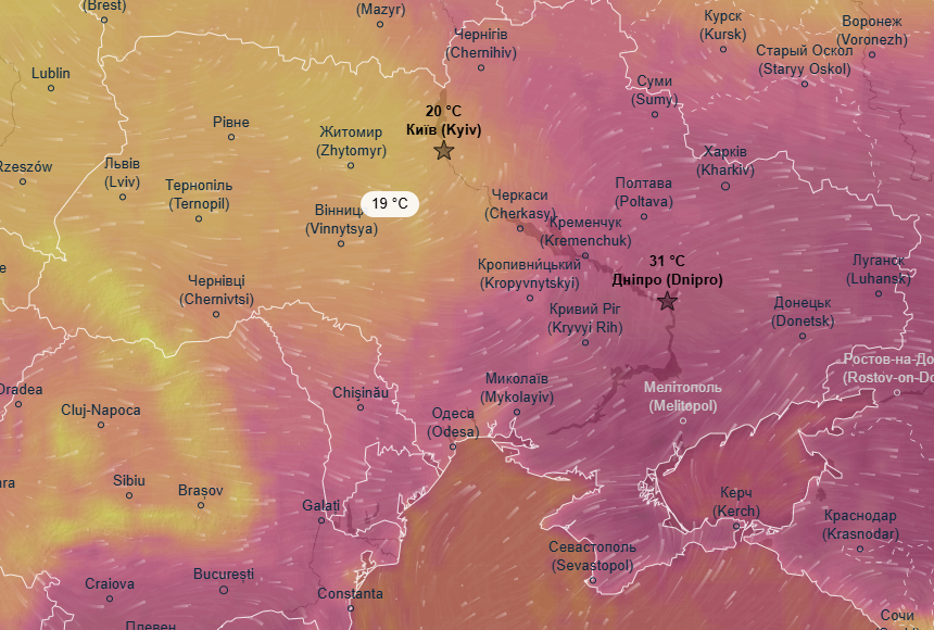А от на півдні та сході очікується спекотна і суха погода, вдень стовпчики термометрів покажуть від +32 до +35 градусів. Найгарячіше буде на Миколаївщині, Запоріжжі, Луганщині та Донеччині.