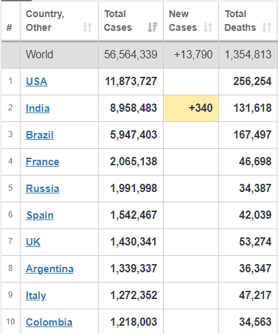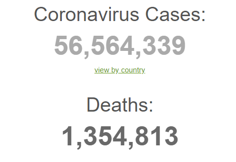 Тим часом в світі коронавірус підхопили понад 56,5 мільйона чоловік, від ускладнень вірусу померли 1,35 мільйона пацієнтів.