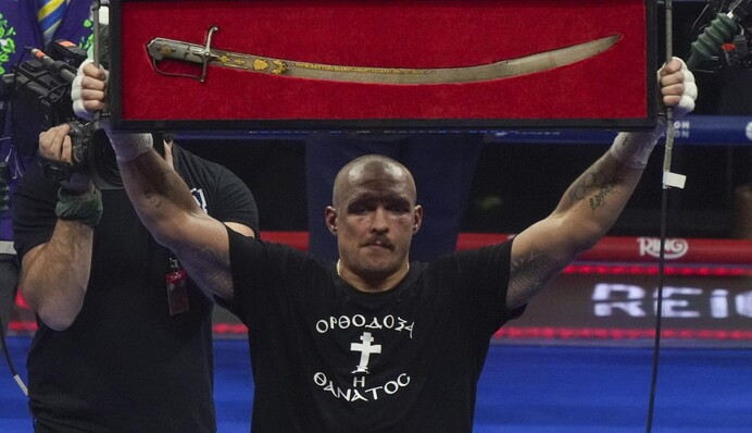 Український боксер Олександр Усик, який підняв на ринзі унікальну шаблю гетьмана Івана Мазепи, датовану XVII століттям, заявив, що для нього честь тримати в руках унікальний артефакт. Він наголосив, що Росія століттями паплюжила ім"я гетьмана Мазепи, але тепер воно повертається у світовий медіапростір і отримає визнання, на яке заслуговує.