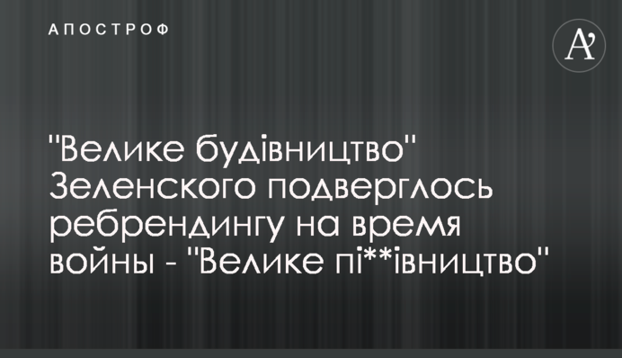 Програма президента Володимира Зеленського "Велике будівництво" зазнала вимушеного ребрендингу і на час війни з Росією перетворилася на "Велике пі**івництво".