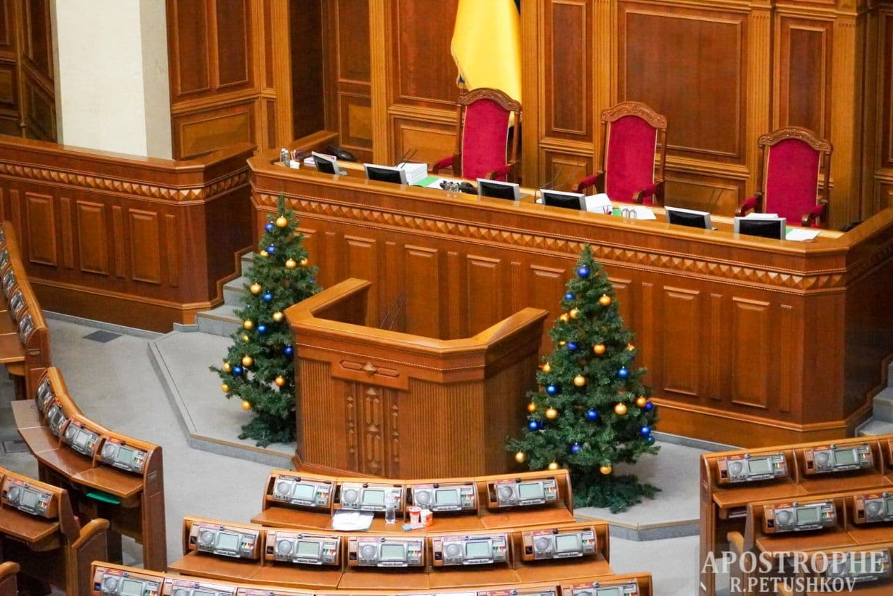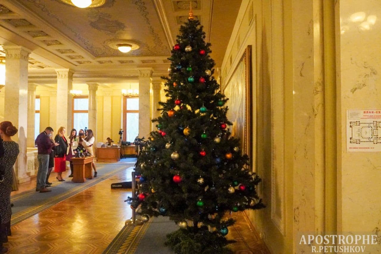 У вівторок, 14 грудня, будівлю Верховної Ради прикрасили до новорічних свят. Сьогодні там з'явилися святкові ялинки.