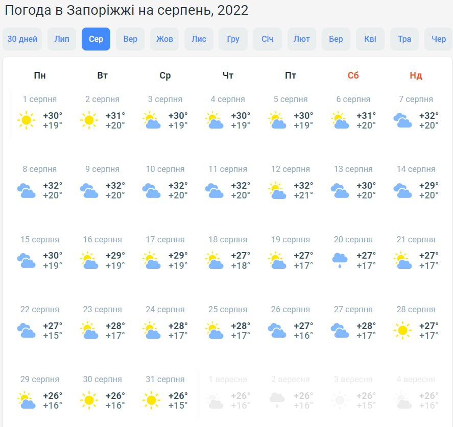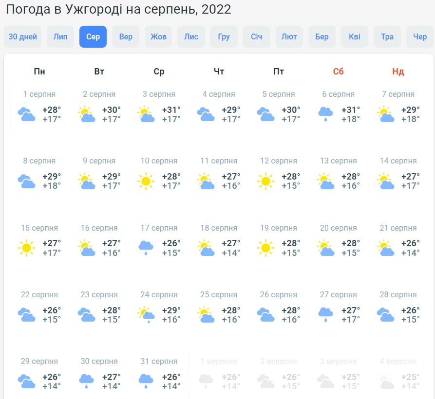 Серпень 2022 року подарує погоду на будь-який смак: будуть задоволені як любителі свіжої погоди та комфортних температур, так і ті, хто не встиг засмагнути.