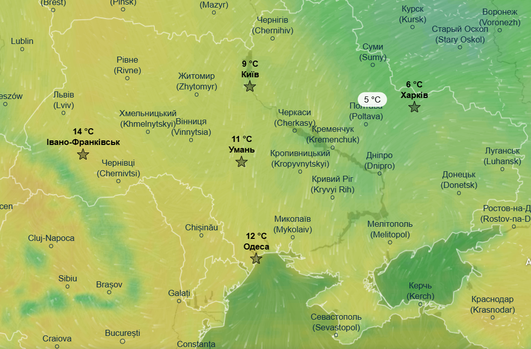 Тим часом на решті території країни синоптики прогнозують прохолодну погоду — в межах +5...+6 °С.