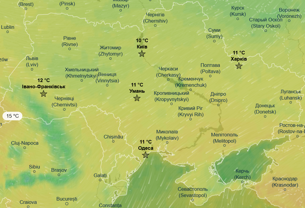 При цьому в центральних областях подекуди синоптики прогнозують "острівці" холоду з +8...+10 °С.