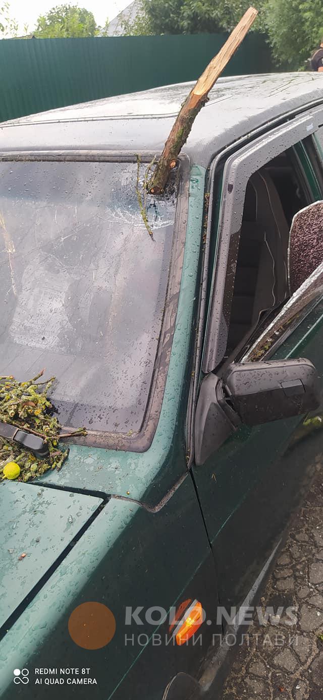У місті Лубни вітер пошкодив дахи будинків, а одним з дерев, що впали, розбило вікно. Частина міста була знеструмлена.