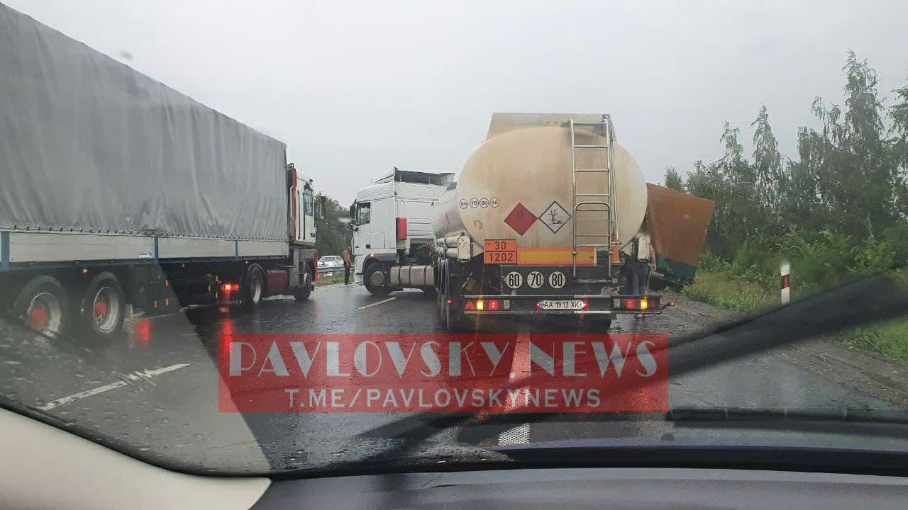 "Їх зносило на мокру, слизьку узбіччя і вони застрявали в глині і бруді. Інші фури тросами їх витягали. В результаті утворилася пробка", - йдеться в повідомленні.
