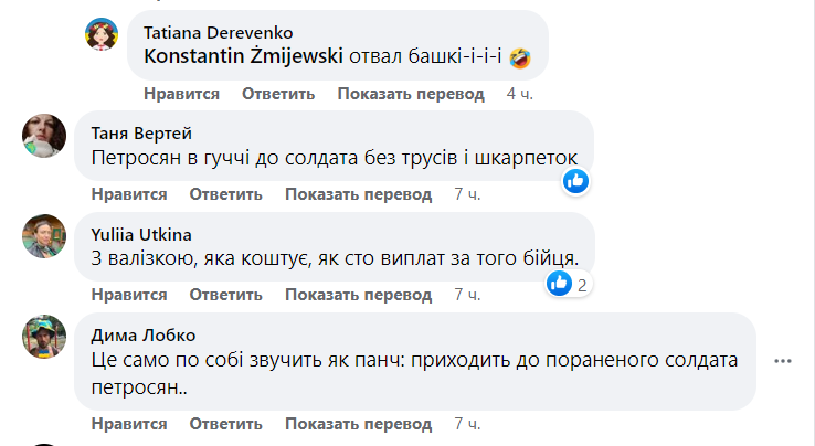 "Петросян приходить показати свій портфель Gucci?" , – цікавиться Ольга Сафронова.