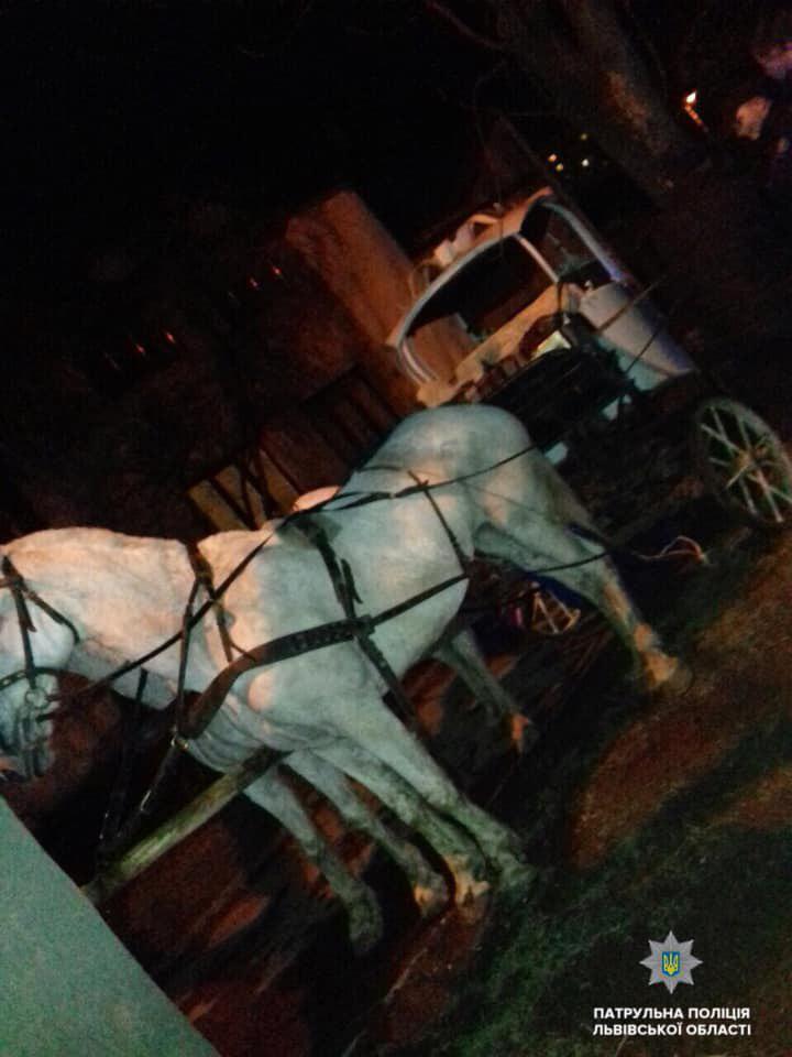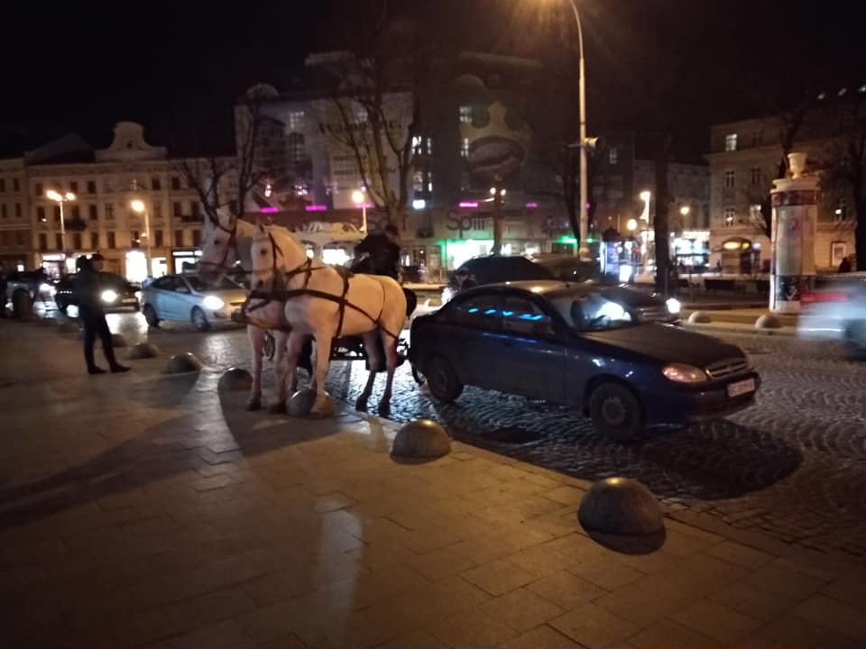 16 березня у Львов на проспекті Свободи трапилася дорожньо-транспортна пригода за участі карети з кіньми та автомобіля Lanos.