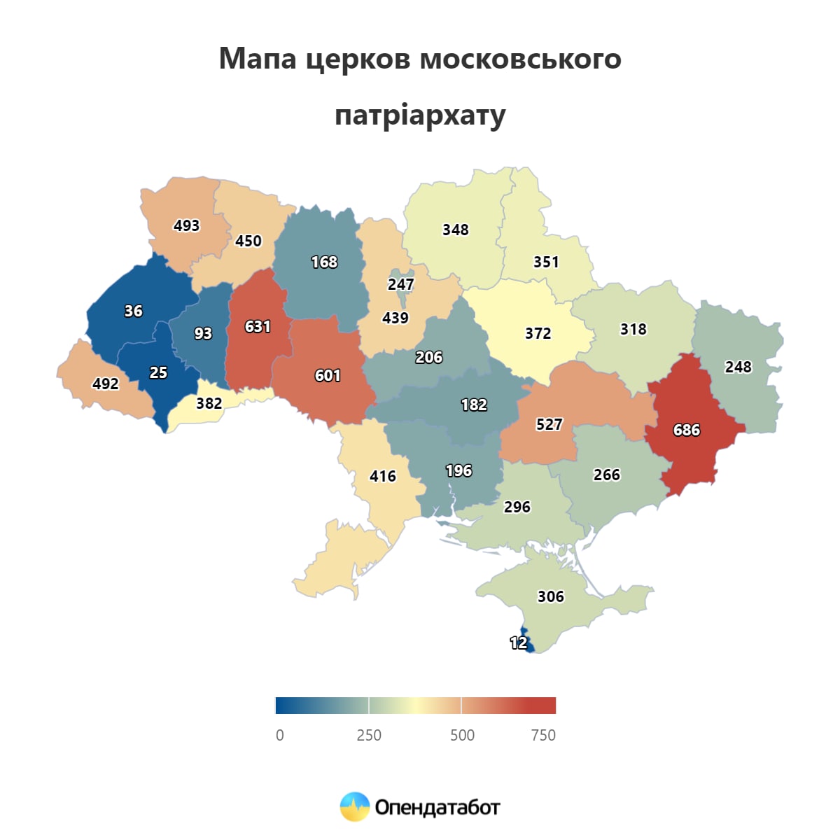 Зазначимо, згідно з даними відкритих реєстрів, на території Львівської області загалом знаходиться 36 церков УПЦ (МП). Менше тільки на Івано-Франківщині - лише 25. Найбільше ж їх, якщо не враховувати Донецьку та Луганську області, на Хмельниччині, де нарахували аж 631 московський храм.