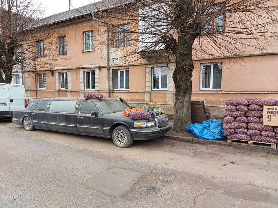 У Чернівцях почали продавати картоплю і цибулю прямо з лімузина. Цей "ексклюзив" потрапив у об'єктив камери, і місцеві жителі публікують фотографії в мережі.