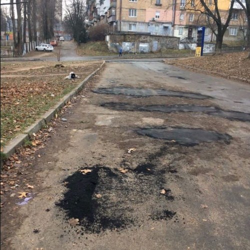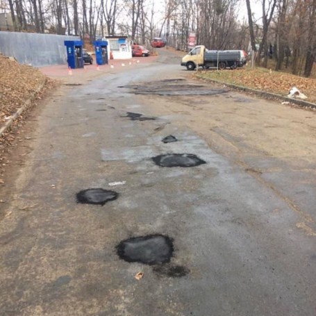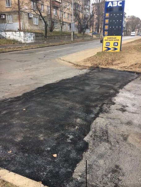 Так, на знімках видно, як ями на дорозі просто засипали асфальтовим покриттям. Помітно, що таким чином залатали мінімум сім ям в дорожньому покритті. При цьому основне дорожнє покриття працівники залишили без змін і на ньому помітні тріщини. Таким чином, такого роду ремонт є вкрай неефективним, оскільки через якийсь час доведеться також латати вже нові дірки.