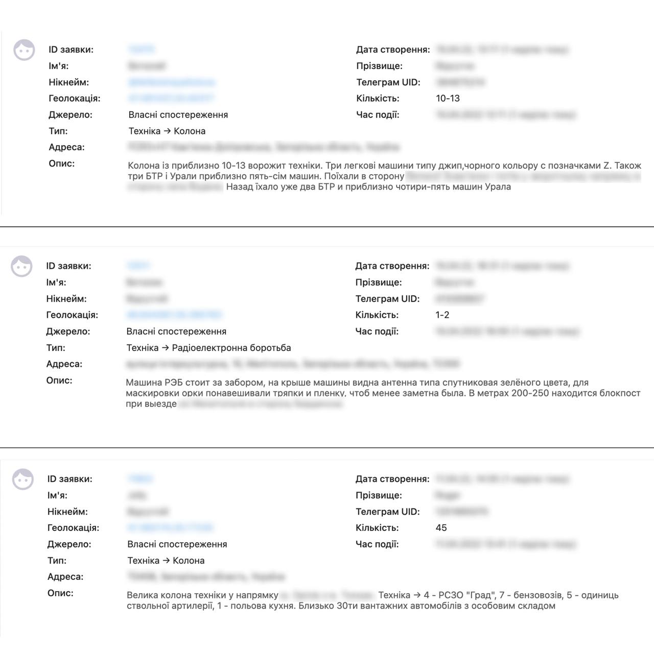 - будь-які інші подробиці, які здаються вам важливими для військових.