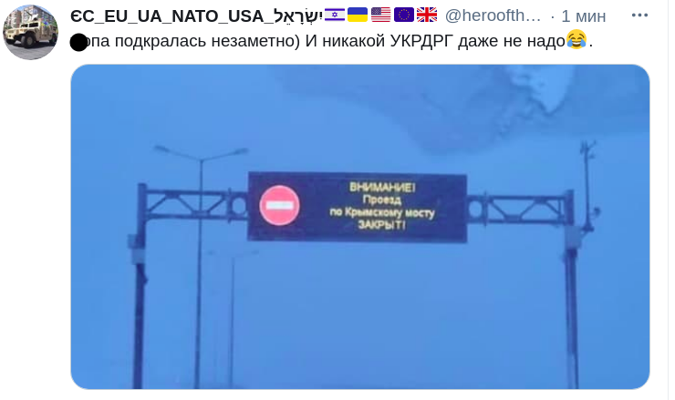 "У районі Кримського моста рух повністю припинено. Ведуться роботи з розчищення доріг від снігу. У зв'язку з аварійними ситуаціями на деяких ділянках траси "Таврида" виникають затори, рух утруднено. З боку Криму рух здійснюється, проте в зв'язку з аварійними ситуаціями може бути ускладнене", - йдеться в повідомленні так званого МНС окупантів в Криму.