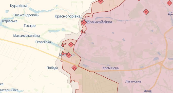 На Мар"їнському напрямку ворог вів безуспішні штурмові дії в районах Красногорівки, Мар"їнки та Побєди Донецької області, де українські воїни відбили 16 атак.