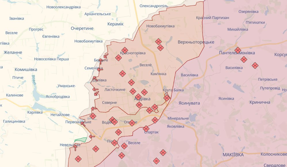 На Авдіївському напрямку нашими захисниками відбито 13 атак ворога в районах населених пунктів Бердичі, Тоненьке, Первомайське, Орлівка, Олександропіль та Невельське Донецької області.