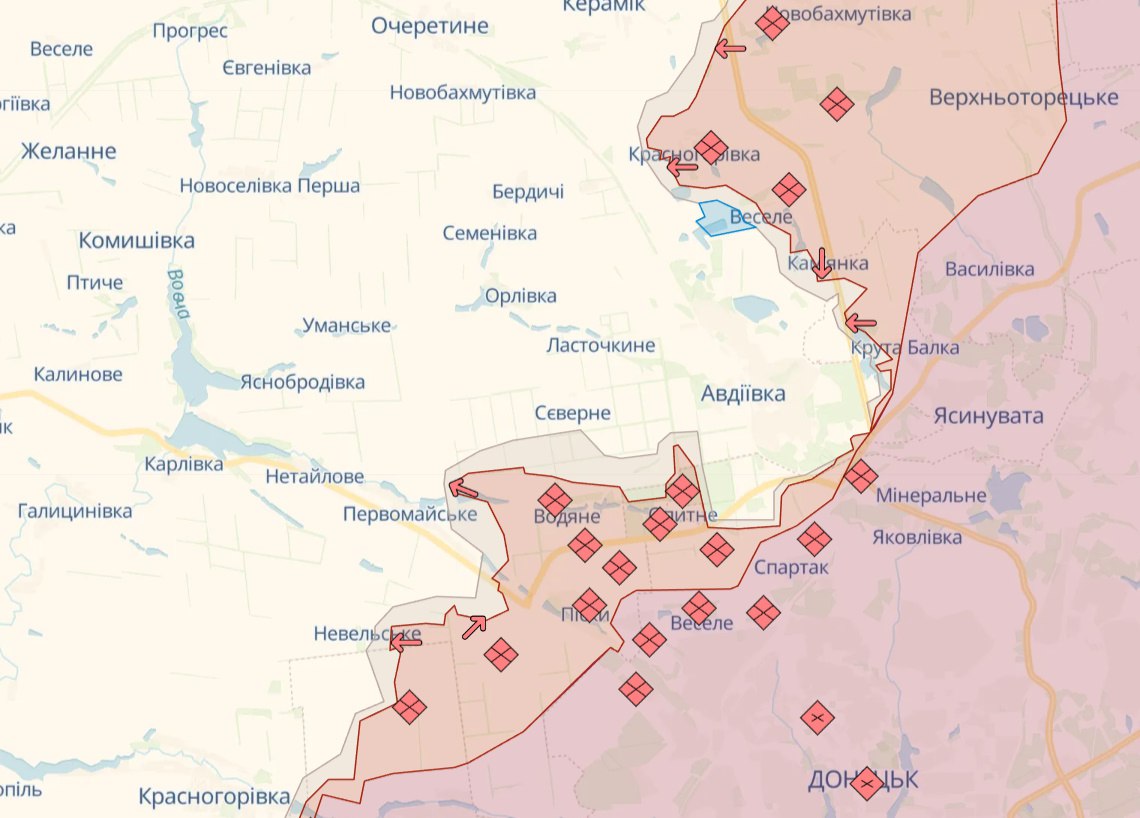 На Авдіївському напрямку противник завдав авіаційного удару в районі Авдіївки. Здійснив артилерійські обстріли районів населених пунктів Бердичі, Авдіївка, Водяне, Карлівка та Первомайське.