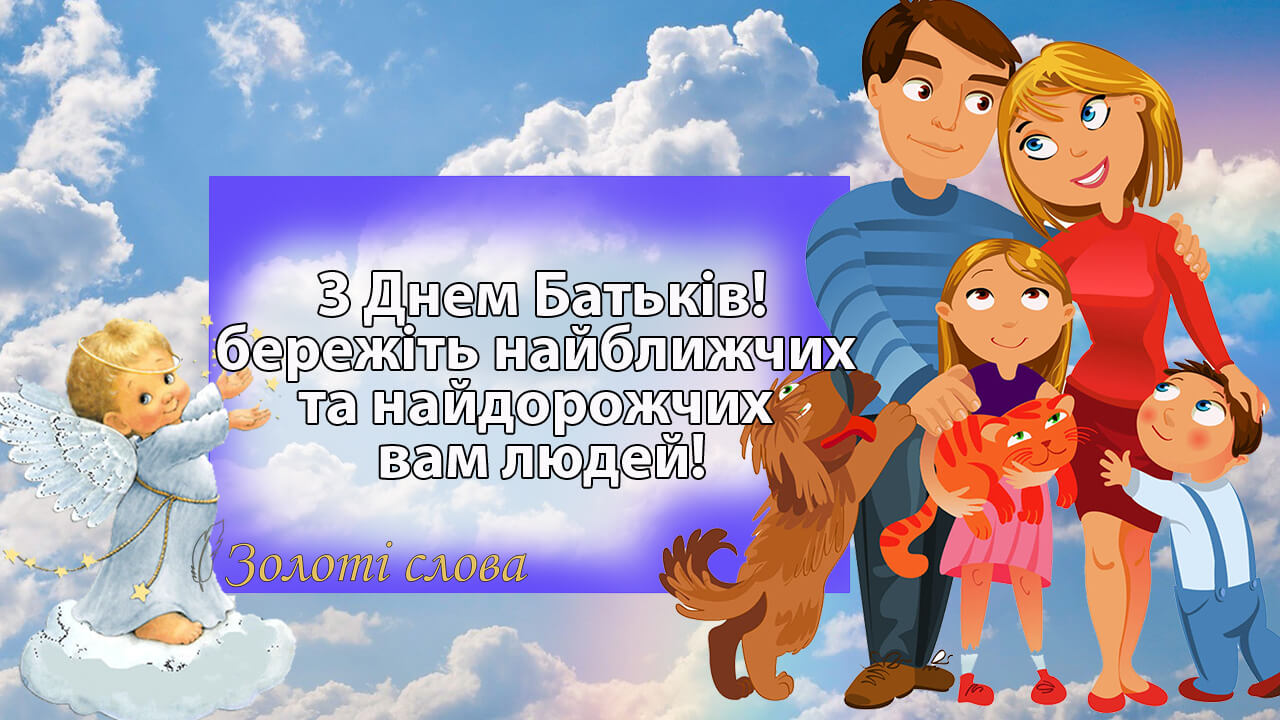 Вітаю з Всесвітнім днем батьків. Бажаю завжди бути на одній хвилі з дитиною, бажаю, щоб у родині був мир і гармонія, бажаю, щоб батьки міцно любили чадо і в будь-якому питанні допомагали знайти йому вірну відповідь, бажаю, щоб дитина щиро вас цінувала і наповнювала ваші серця щастям.