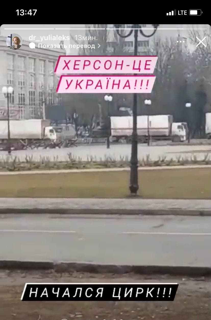 У захопленому Херсоні окупанти намагаються роздавати "гуманітарну допомогу" під камери російських телекомпаній. Щоправда, картинка вийшла так собі – українські патріоти вийшли на мітинг у центрі міста з українськими прапорами.
